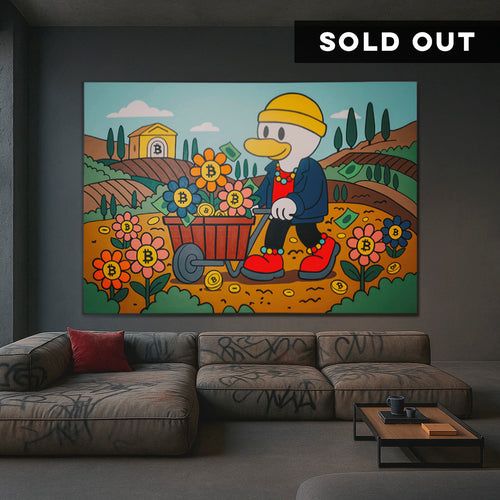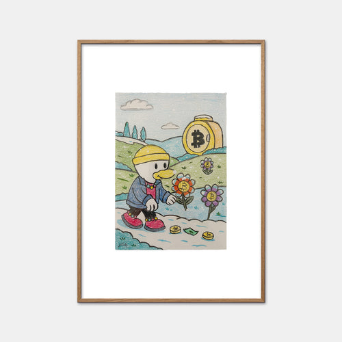 A central element in my work is "BB. Duck" a character born from a mixture of nostalgia, humor, and imagination. He loves flowers and he got billionaire by growing the world's most expensive flowers; The Bitcoin Flowers.